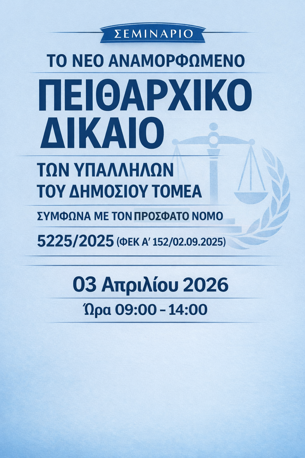 1. Νόμος 5225/2025 – Αναμόρφωση πειθαρχικού δικαίου & σύσταση Ελληνικού Κέντρου Εμπειρογνωμοσύνης